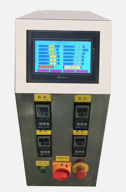 Control system with Chinese and English display screen, stainless steel body, after the parameters (filling amount and length of bag) arrest at the display setting unit, the control system will automatically optimize and match the actions, thus achieving best packaging speed. Reliable and stable dual light source photoelectric check detecting system, assuring complete logo of the packing bags. Controlled by intelligent temperature controller, automatic measuring, filling, sealing, marking, cutting and counting.